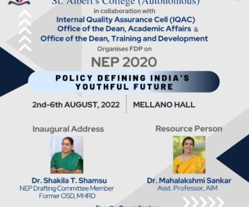 *A 5 day Faculty Development Programme on NEP 2020- Policy Defining India’s Youthful Future* is being orgnainsed from 2nd to 6th August 2022.