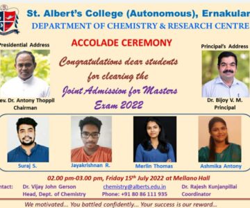 The Department of Chemistry & Research Centre organized ‘Accolade Ceremony’ on 15th July, 2022 at Melano Hall, 2.00 – 3.00 pm