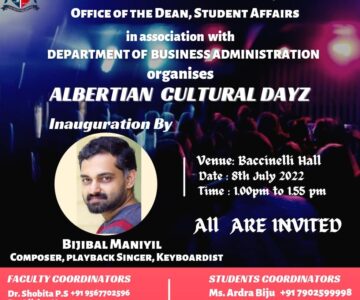 The Albertian Cultural Days will be inaugurated by Mr. Bijibal on 8th July, 2022 at Baccinelli Hall!