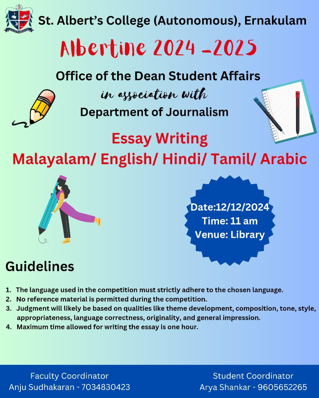 ALBERTINE YOUTH FESTIVAL ESSAY WRITING Gallery ALBERTINE YOUTH FESTIVAL ESSAY WRITING ALBERTINE ALBERTINE YOUTH FESTIVAL ESSAY WRITING By Internal Quality Assurance Cell|December 21, 2024|ALBERTINE|Comments Off on ALBERTINE YOUTH FESTIVAL ESSAY WRITING Read More