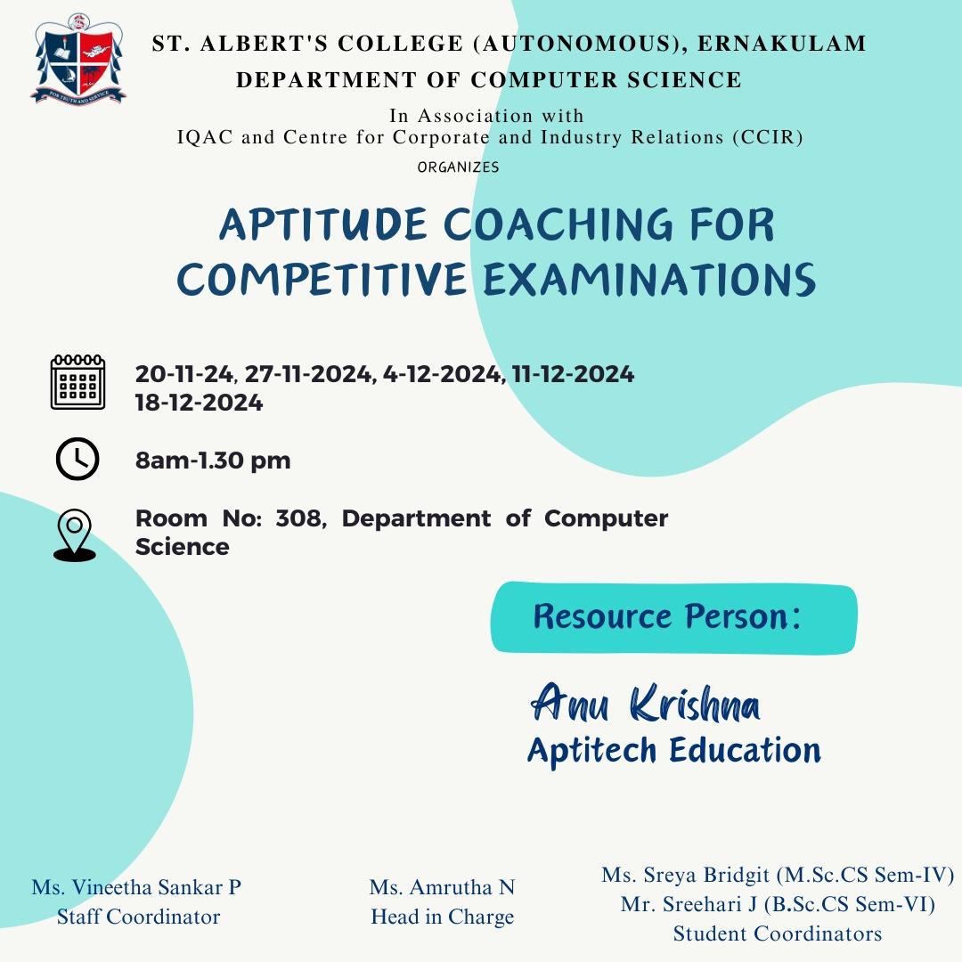 Aptitude Coaching For Competitive Examinations Gallery Aptitude Coaching For Competitive Examinations Computer Science, News Aptitude Coaching For Competitive Examinations By Internal Quality Assurance Cell|November 21, 2024|Computer Science, News|Comments Off on Aptitude Coaching For Competitive Examinations Read More