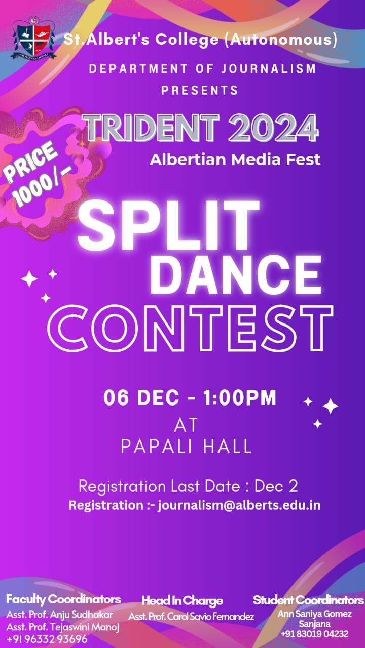 TRIDENT 2024 Gallery TRIDENT 2024 Journalism, News TRIDENT 2024 Split Dance Contest By Internal Quality Assurance Cell|December 2, 2024|Journalism, News|Comments Off on TRIDENT 2024 Read More