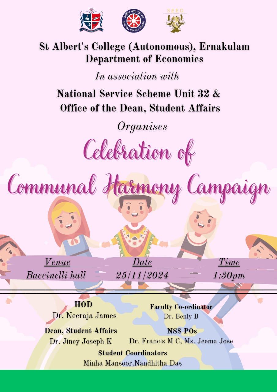Celebration of Communal Harmony Campaign Gallery Celebration of Communal Harmony Campaign News, NSS Celebration of Communal Harmony Campaign By Internal Quality Assurance Cell|November 26, 2024|News, NSS|Comments Off on Celebration of Communal Harmony Campaign Read More