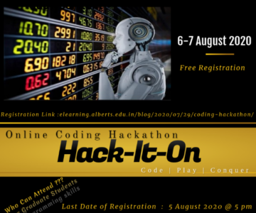 The Department of Computer Science, St. Albertās College (Autonomous) organised a two day national level Online Coding Hackathon, āHack-It-Onā on 6th and 7th of August, 2020. The aim of this event was to test the Programming capabilities of Undergraduate Students in the field of Computer Science. Hack-It-On was conducted at 2 levels. 45 students participated in the event. The first 10 participants were selected to the second level. Mr. Rahul P S secured the first position, Ms. Mary Betsy Rocha secured the second position and Mr. Antony Evan Alosius secured the third position. E-certificates were given to the winners.