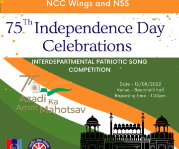 Office of the Dean, Student Affairs in collaboration with NCC Wings and the NSS is conducting an Inter-Departmental Patriotic Song Competition as part of the 75th Independence Day Celebrations!