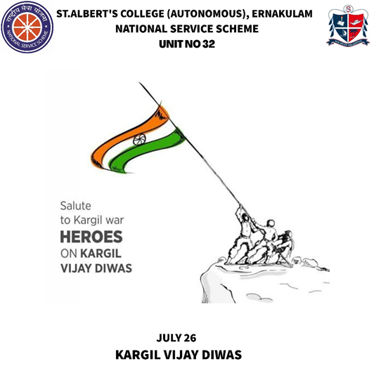 The NSS unit of the college commemorated Kargil Vijay Diwas on 26th July, 2020. The volunteers spread awareness on the importance of the day and paid homage to the Kargil heroes through various social media platforms. The meeting was conducted under the leadership of NSS programme officers Prof. Sebastian A V and Prof. Sumisha E S. The programme officers shared their thoughts about honouring the soldiers. NSS volunteers Aryanandha Vidhyan and Mia Casilda shared valuable insights with the assistance of PowerPoint presentations.