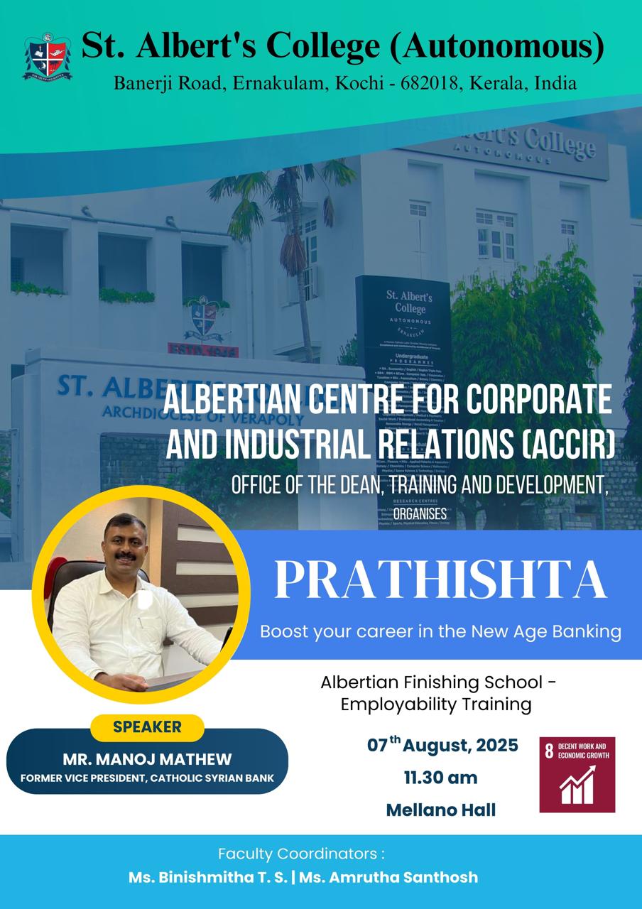 St. Albert’s College (Autonomous) works with a powerful vision to be a centre of excellence through the process of self-evaluation and continual renewal in all endeavours, namely learning, teaching, research, consultancy and other related services and an empowering mission to equip young people to meet the challenges of modern times, existing for students by providing a most friendly and growth-oriented ambience.