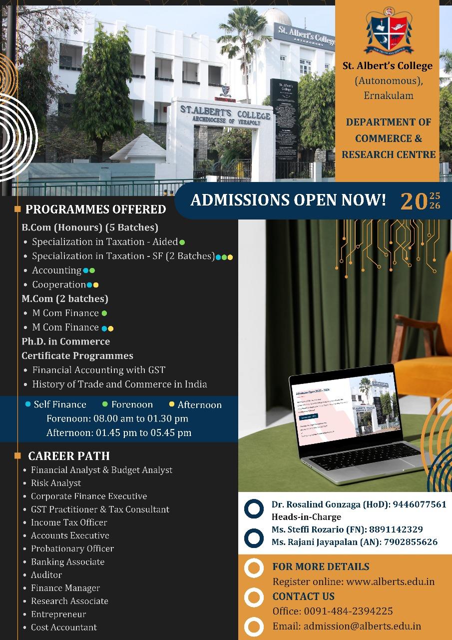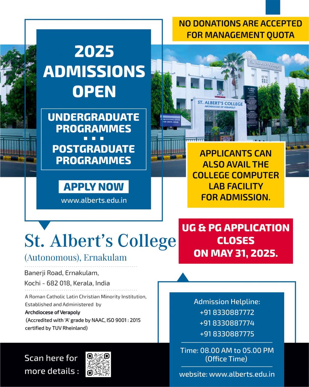 St. Albert’s College is an Autonomous Institution situated at the heart of the city of Kochi, affiliated to the Mahatma Gandhi University, Kottayam and is functioning under the management of the Archdiocese of Verapoly.The seeds of this portal of higher learning had already been sown when St. Albert’s High School commenced its functioning in the year 1892