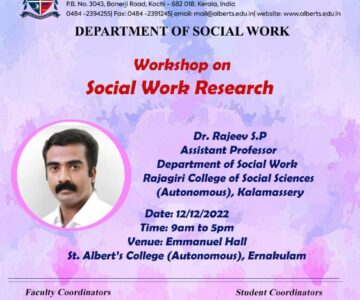 The Department of Social Work organizes a workshop on Social Work Research on 12th December 2022, 9.00am to 5.00 pm @ Emmanuel Hall.